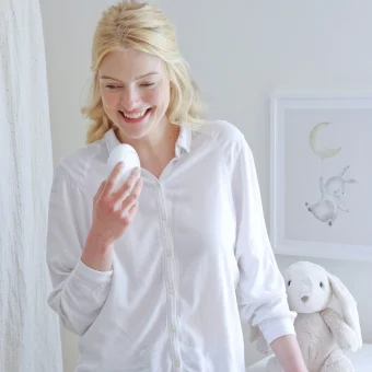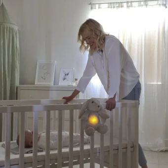 Thanks to the Shake & Play motion sensor, a simple shake of the plush toy restarts the light, lullabies and the sound message recorded by the parents. LoveLight™ Buddies – Billy Bunny™ can also be hung on the baby’s bed, just like a night mobile. The rechargeable monitor and the plush toy can also be used separately: a nomadic night light that can be placed on the dresser in the room and the comforter that will accompany the child.