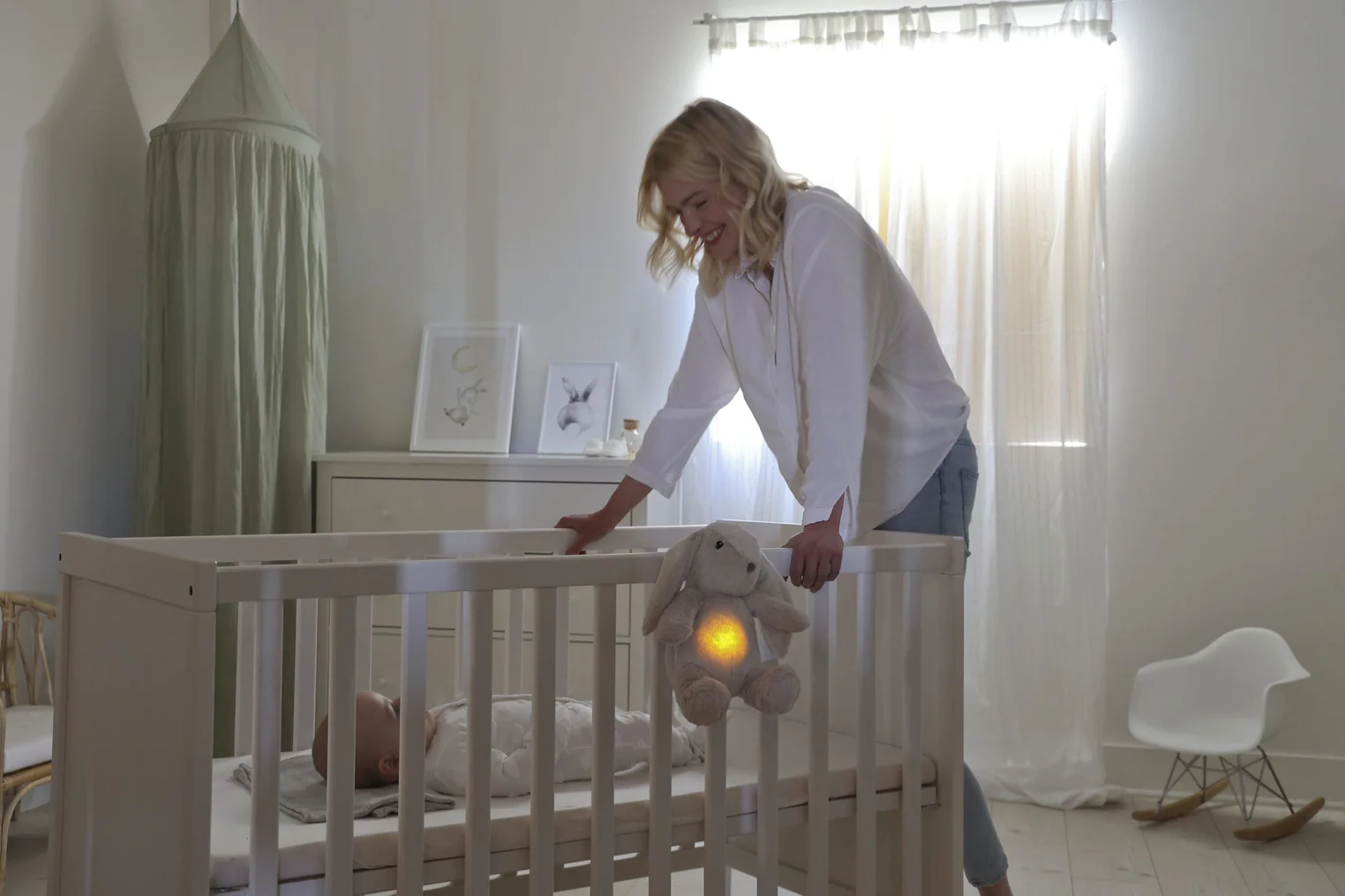 Parents can record a personalized message or sing a favorite lullaby in their own voice, which the plush bunny can play back to comfort baby at bedtime.
