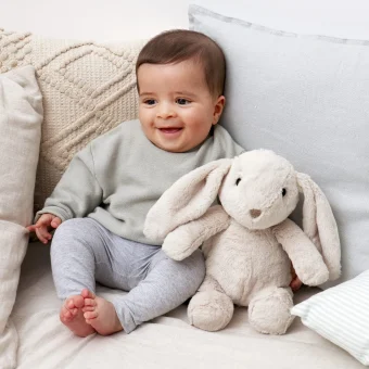 Little ones can cuddle this cozy plush bunny companion anytime for comfort and reassurance.