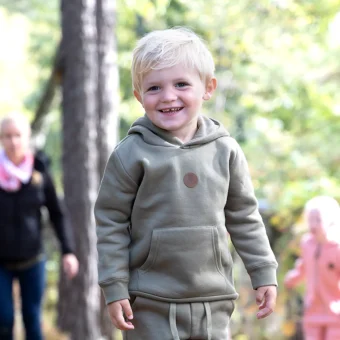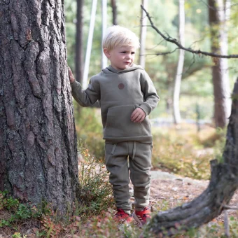 Bruse hoodie and pants is a wonderful leisure set produced in a soft and durable cotton quality. The top has a hood and a pocket on the stomach. Elastic band around wrists and waistband is practical and gives a nice fit. The trousers have an elastic waistband with the possibility of adjusting the elastic, in addition to lacing and a break around the ankle.
