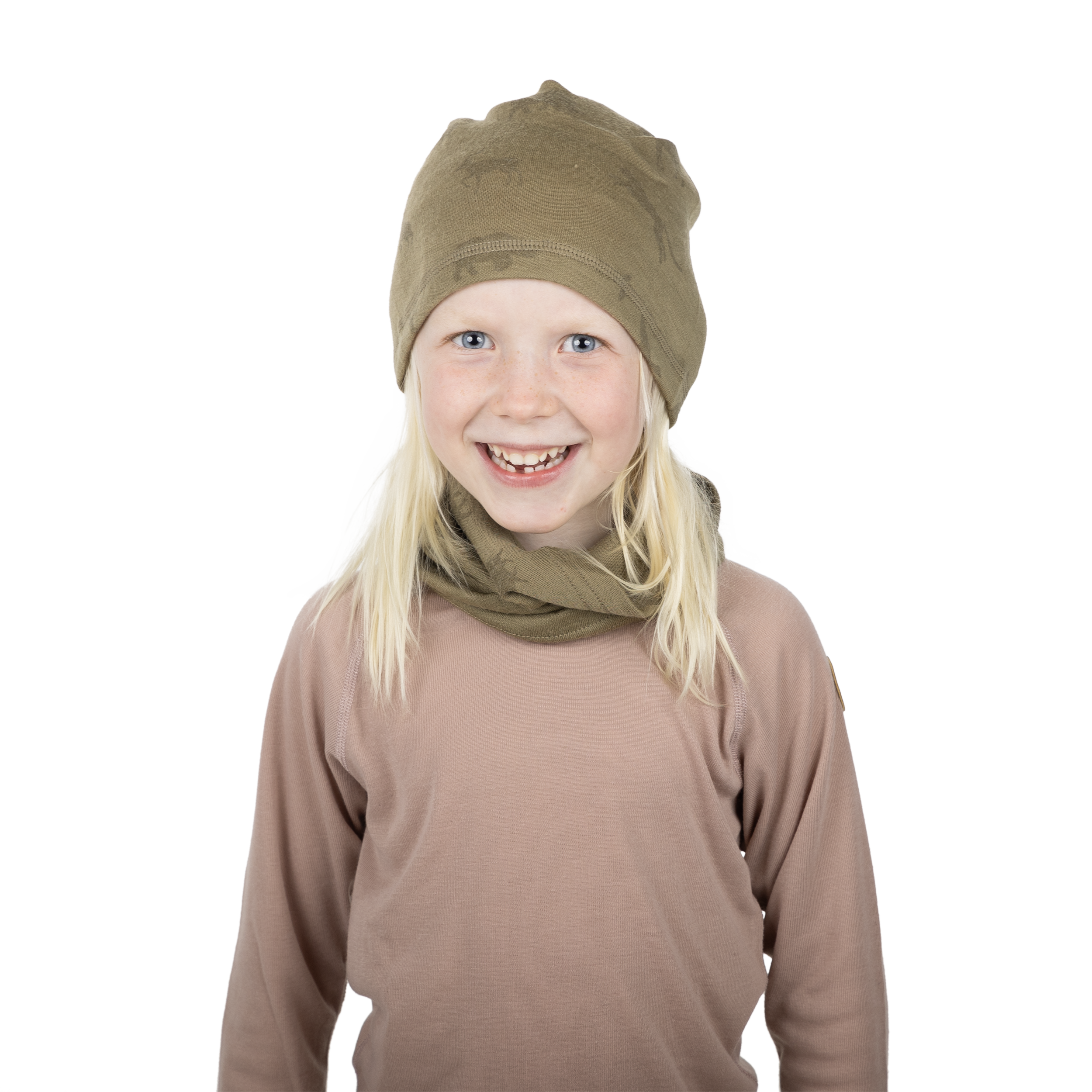 Bruse Húfa Merino ull – Covert Green m/dýrum