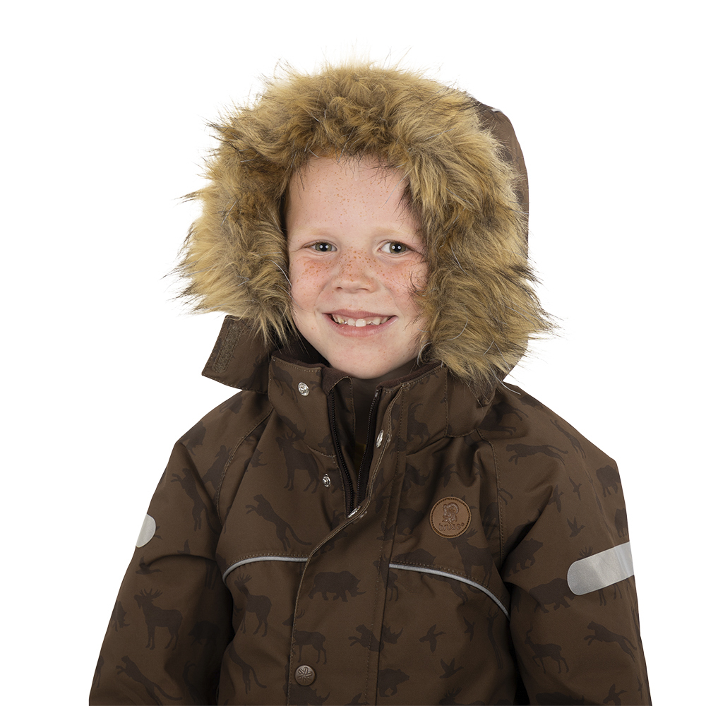 This is a suit filled with great details that meets the needs of active kids. It has many reflectors for the best possible visibility, and an adjustable elastic at the waist for a better fit. The removable artificial fur protects extra well against weather and wind, and both fur and hood are removable.