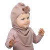 Soft and delicious balaclava hat with cute tassel on top. The hat warms the head and neck, and has windstops for the ears.