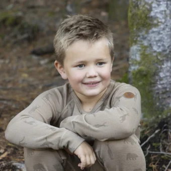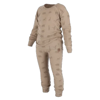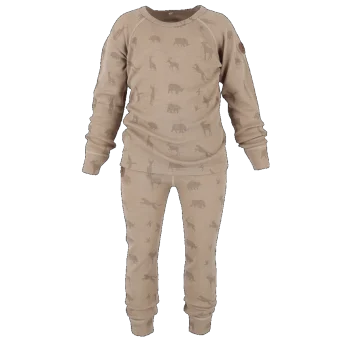 The set fits perfectly as an inner layer against the body with its close-fitting shape. Figures in soft, fine colors are taken from the animal kingdom and characterize the garment.