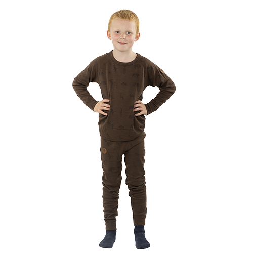 The set fits perfectly as an inner layer against the body with its close-fitting shape. Figures in soft, fine colors are taken from the animal kingdom and characterize the garment.