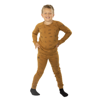 The set fits perfectly as an inner layer against the body with its close-fitting shape. Figures in soft, fine colors are taken from the animal kingdom and characterize the garment.