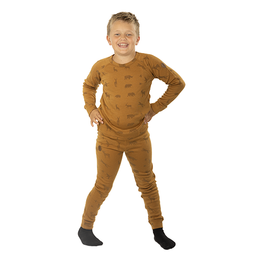 The set fits perfectly as an inner layer against the body with its close-fitting shape. Figures in soft, fine colors are taken from the animal kingdom and characterize the garment.