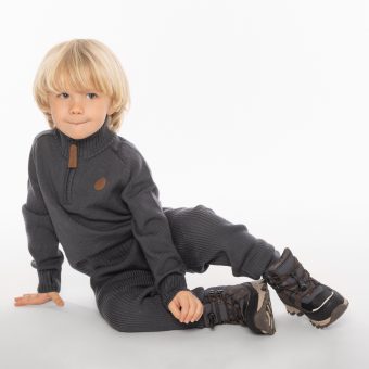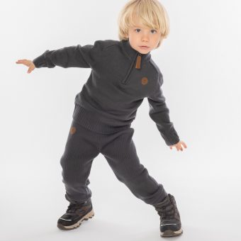 Upper part in a lovely, soft wool blend, has a high neck with zip closure, which is comfortable on cool days. The trousers are ribbed in a figure-hugging shape, with an elastic waistband.