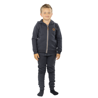 Wonderful leisure set produced in a soft and durable cotton grade. The upper has a hood and pocket on the belly. Elastic broth around the wrist and waistband is practical and provides a nice fit. The trousers have an elastic waistband with the possibility of adjusting the elastic, in addition to lacing and broking around the ankle.