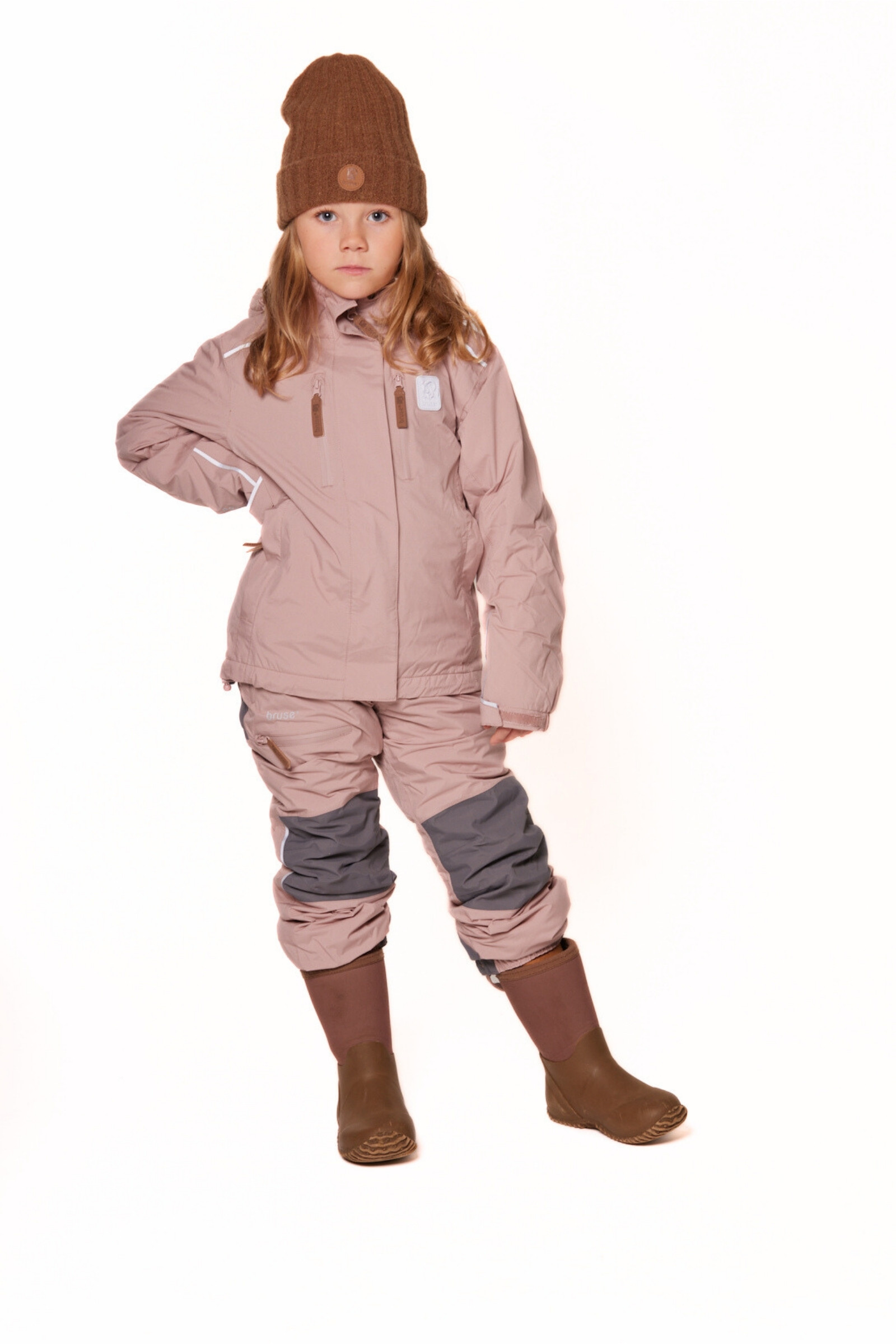 Birk is a lightly quilted jacket, which is waterproof and windproof. To ensure the safety of children, the hood is removable and the jacket has reflective details at the front and back for better visibility in the dark. Pulse warmers around the wrists as well as velcro tightening and elastic lacing at the waist keep the cold out and make the jacket warm and good.