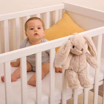 • Velcro rennilás á bangsanum svo að það sé auðvelt að festa hann á utanvert barnarúmið