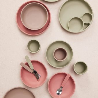 Our dinner set is made from 100% silicone with a soft surface which helps your child to move our cutlery with ease. At the same time our silicone cup offers a firm grip to support your child when practising drinking without your help.