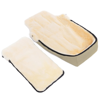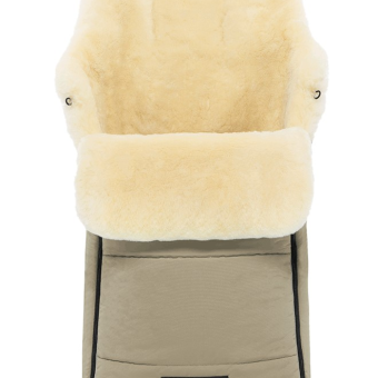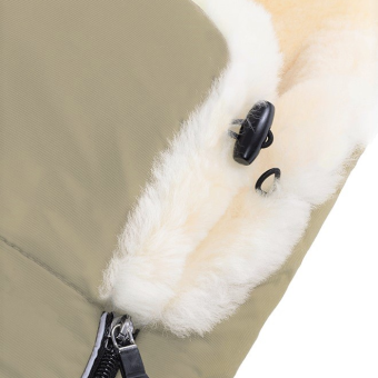 The premium counterpart to our Arosa footmuff is our AROSA LUXE lambskin footmuff. The lambskin inner part of the Arosa LUXE is processed with full fur and is therefore made entirely from whole skins. This is identified by an elegant, embroidered badge on the front. It is equipped with a separable two-way zipper. This processing allows the top and bottom parts to be completely separated on warmer days. The fur cover can be closed high and therefore protects your child from drafts.