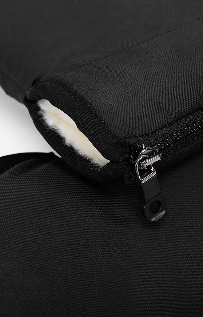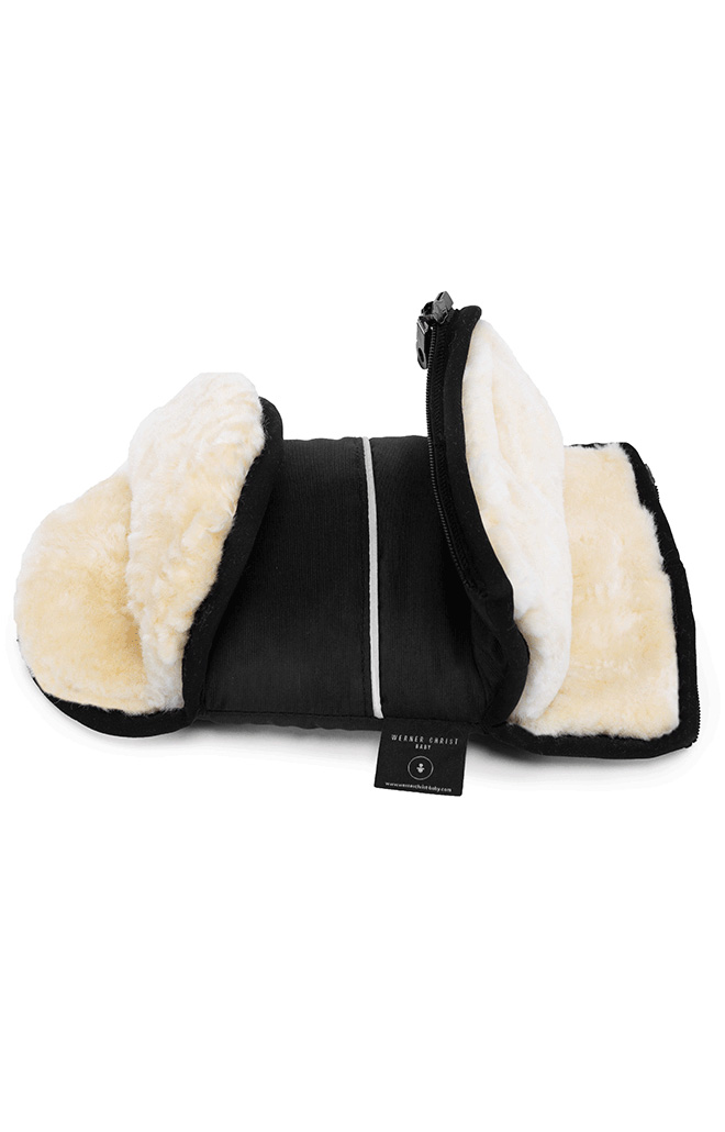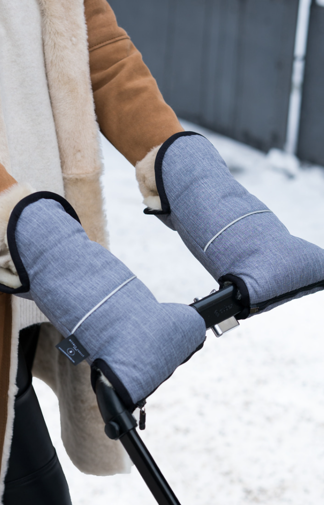 Our hand warmer GLOVY promises warm hands when walking with a stroller or buggy. Real lambskin on the inside ensures a comfortably warm feeling. On the outside it is made with a high-quality, sporty fabric that is wind- and water-repellent. The reflector strips on the top also ensure safe use at dusk. The GLOVYs are easily attached using a zipper. Since it is a two-piece set, this model can be attached to any stroller handles (even with a handbrake). The loop holes warm up to the wrists and make it easy to slip in and out; This means you can immediately reach your child with warm hands and look after them.