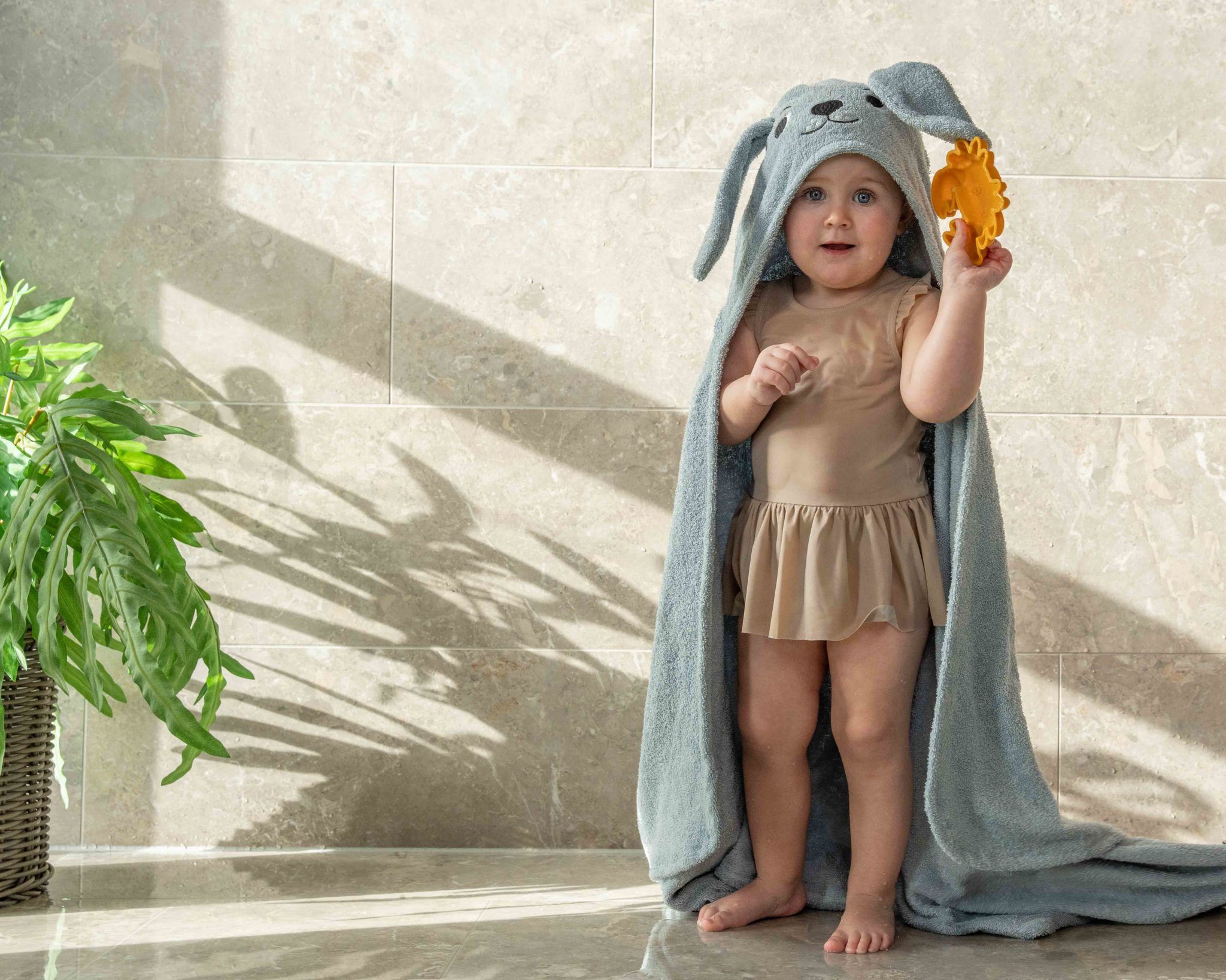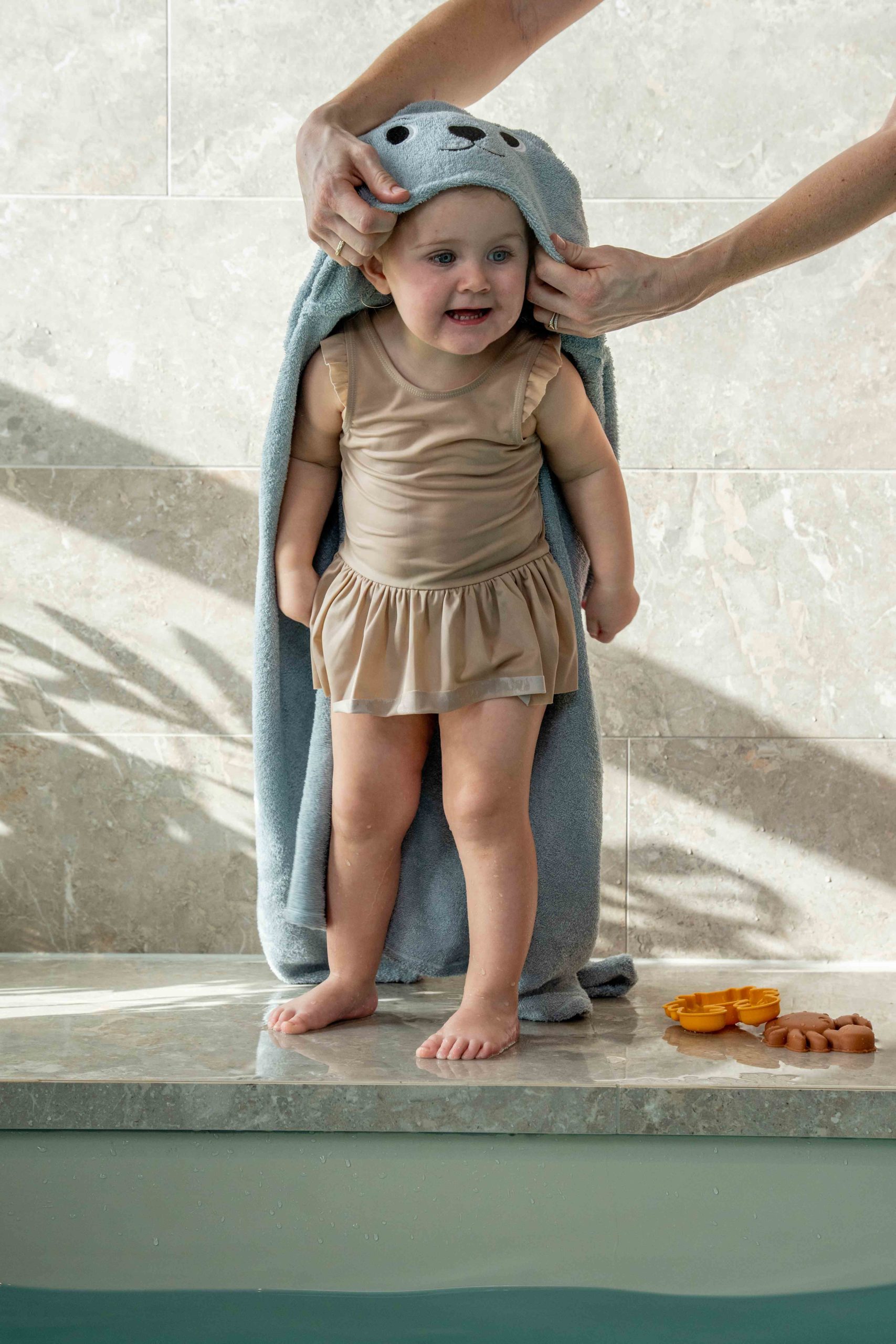 When splashing around has made you really tired, there is nothing better than to get wrapped up in a fluffy hooded towel and to snuggle with mum or dad.