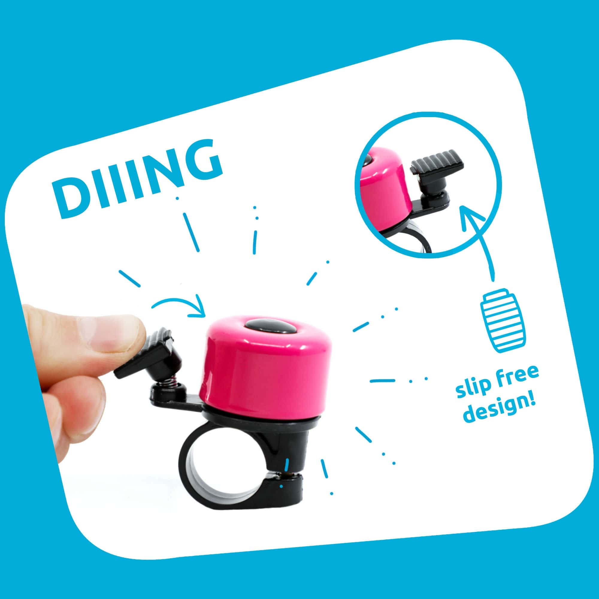 The Crazy Safety bicycle bells aredesigned with safety as priority number one. The combination of the sturdy aluminum cover, a solid plastic base and the strong spring, creates a loud and clear sound.