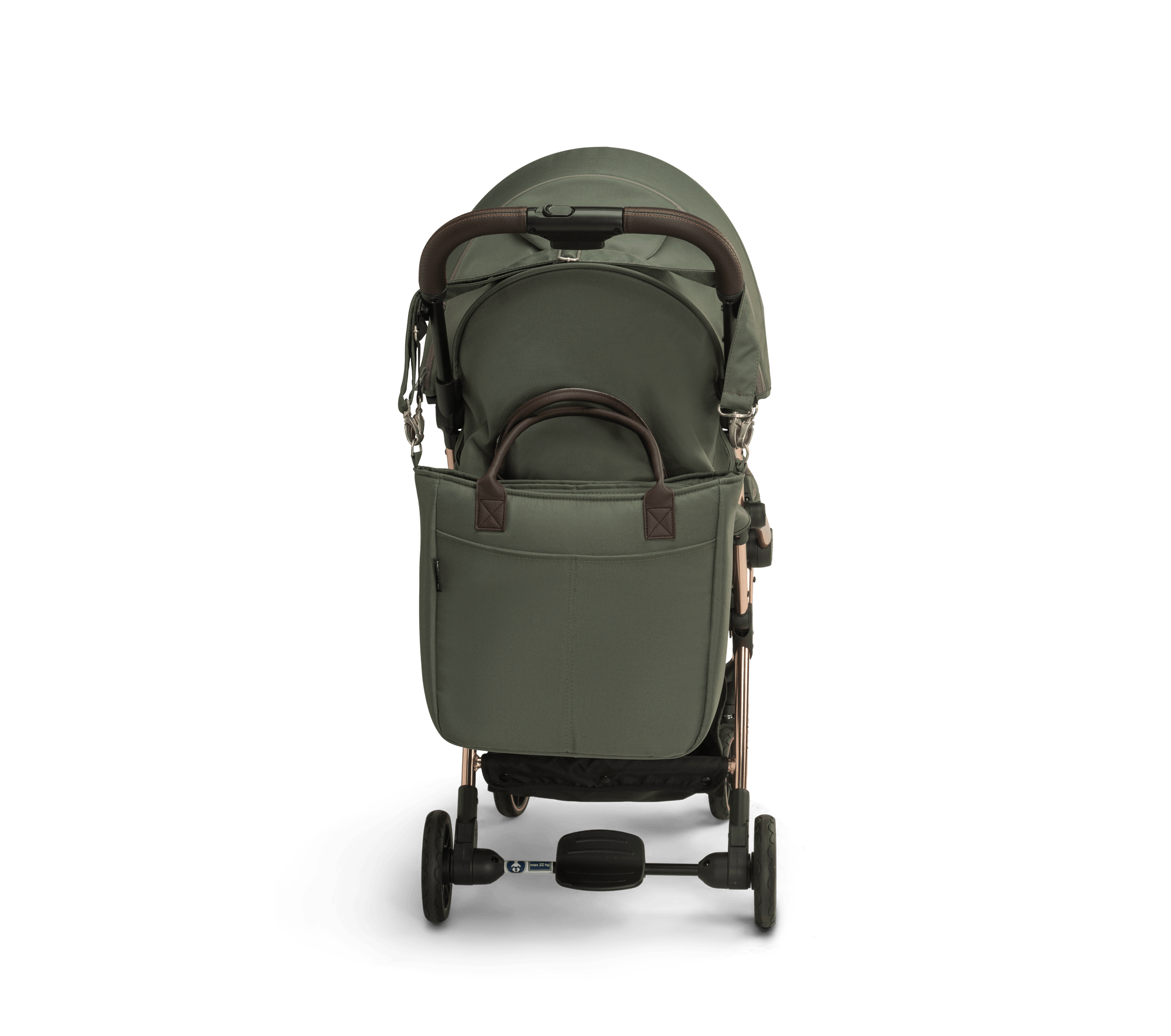 With the bassinet, which is sold separately, you can turn the stroller into a pram that can be used from birth. Other accessories, such as the car seat adapters, ensure that you can attach your car seat to the stroller, and the big brother or sister can also hitch a ride with the wheeled board. Don’t forget to check out the diaper bags, footmuffs, and handy organizers, all of which are available in the color of your favorite Influencer stroller.