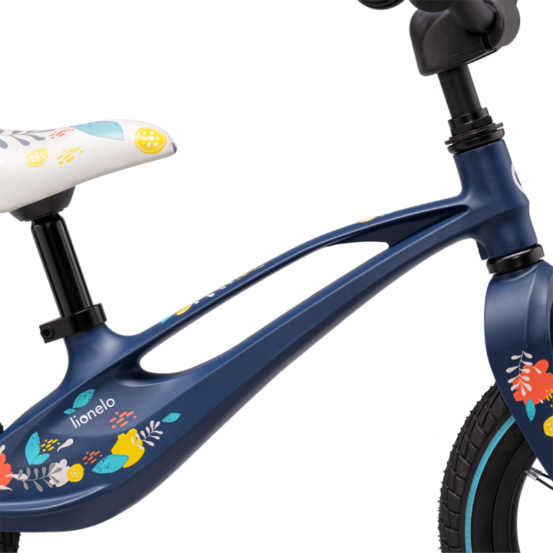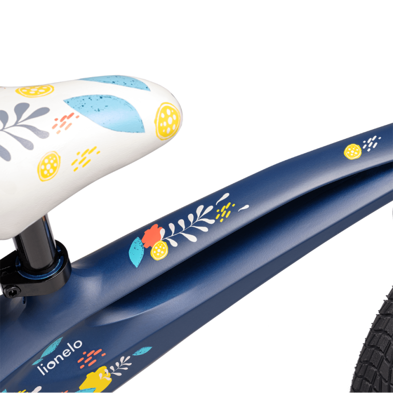 The handlebar and saddle adjustment of the Bart Air model makes it easy to adapt the settings to the needs of children with different body structures. Thanks to the anti-slip pads on the handlebars, steering the bike becomes easier and the steering lock definitely reduces the risk of injury. The frame has been given a gentle embossing that serves as a footrest.