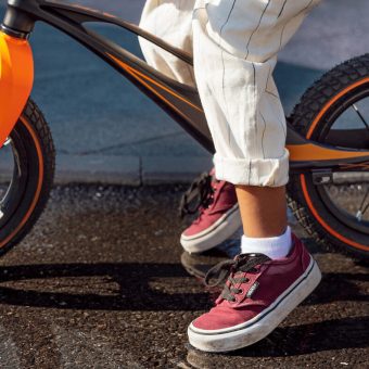 The handlebar and saddle adjustment of the Bart Air model makes it easy to adapt the settings to the needs of children with different body structures. Thanks to the anti-slip pads on the handlebars, steering the bike becomes easier and the steering lock definitely reduces the risk of injury. The frame has been given a gentle embossing that serves as a footrest.