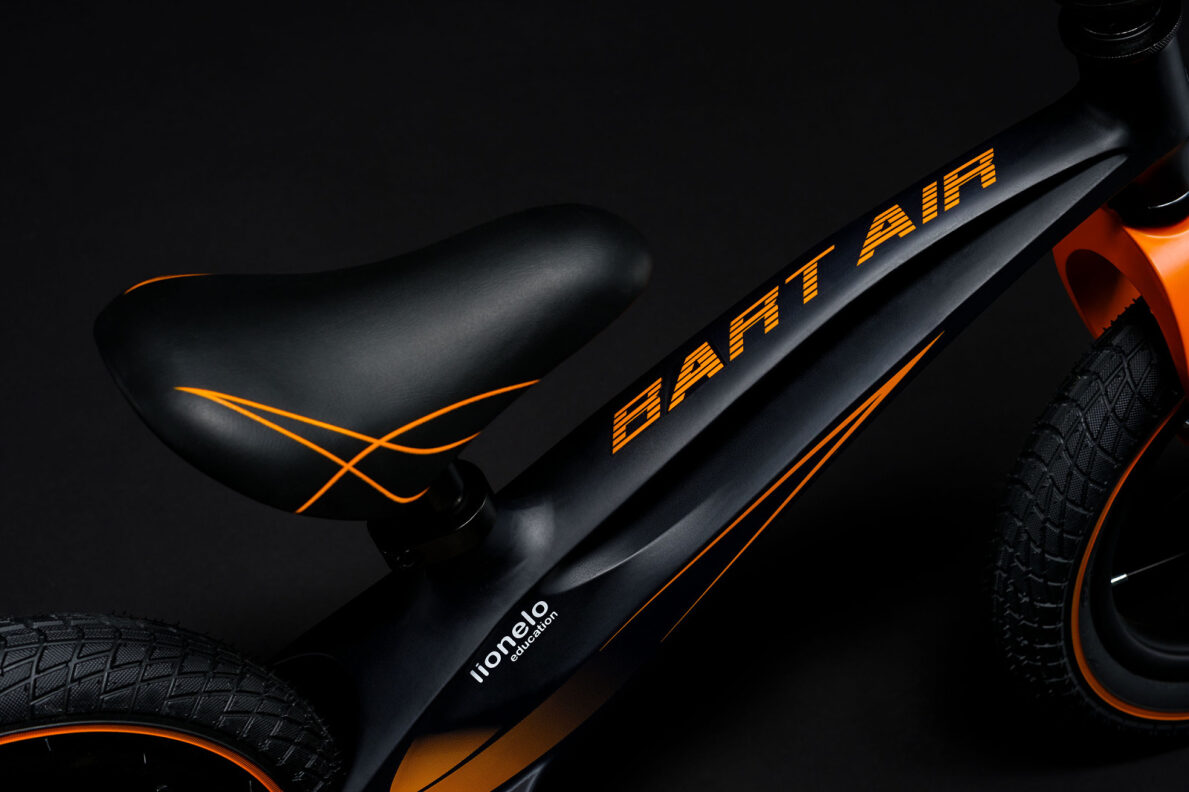 The construction of the Bart Air bicycle is based on a die-cast frame made of a special magnesium alloy. This makes the vehicle 75 percent lighter than comparable products with a steel frame. Manufactured in the technology of seamless construction has a higher strength and resistance to damage, and the cushioning properties of the plastic make it act like a natural shock absorber. Bart Air is a safe educational product for children, which is confirmed by a series of internal controls and the certificate of the SGS testing laboratory. The bike complies with the European safety standard EN 71.