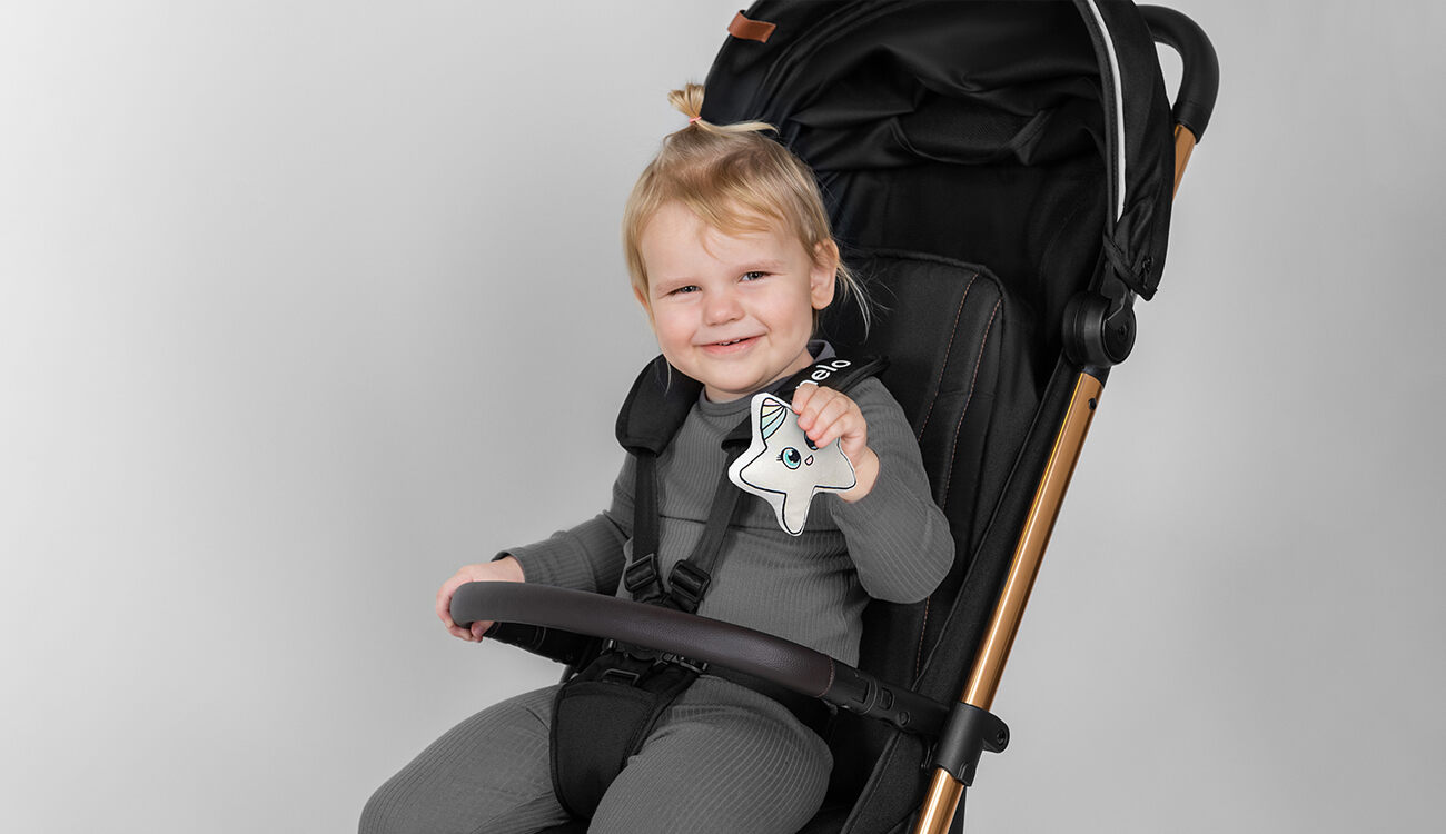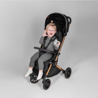 The Cloe model’s seat can be adjusted, and you can also unfold the backrest into a reclining position when your little one feels like taking a nap. The 5-point harness will provide stability for the child, and the railing will further secure the toddler. On the footrest finished in eco leather your child can comfortably rest its feet.