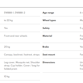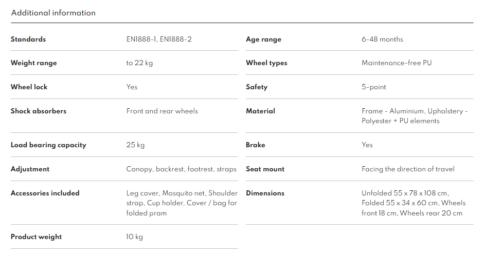 The model is suitable for children from 6 months to 4 years old. The large, maintenance-free wheels are made of durable and flexible EVA foam. The front ones rotate 360°, making it easy to maneuver the stroller. Cushioning in the front and rear ensures comfort for the child while riding. The built-in click&ride system allows parents to take long steps, and the foot brake will guarantee a safe stop.