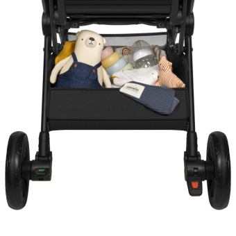 You can easily fold the Lionelo Cloe Black Onyx stroller with one hand. You can also use the auto-folding system – at the push of a button, the stroller will fold itself. You can easily fit it even in a small car trunk. The durable aluminum frame weighs only 8.2 kg. You can easily carry the stroller on your shoulder. With this in mind, we have included a special cover and belt.
