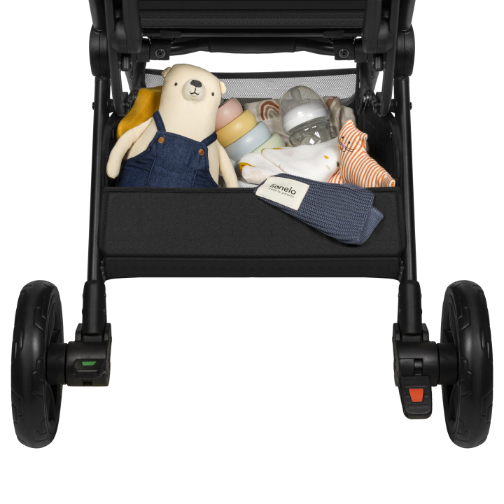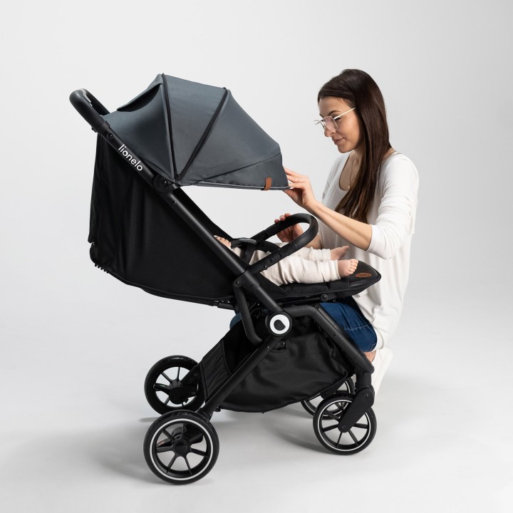 Discover our latest solution compact stroller on large wheels. At Lionelo, we aim to ensure that our strollers are equipped with all the amenities that will allow you and your baby to travel comfortably in a variety of places and on a variety of surfaces. That’s why the Lionelo Cloe Black Onyx stroller will work well not only when strolling in your favorite park, but also when shopping in a crowded city center or traveling.