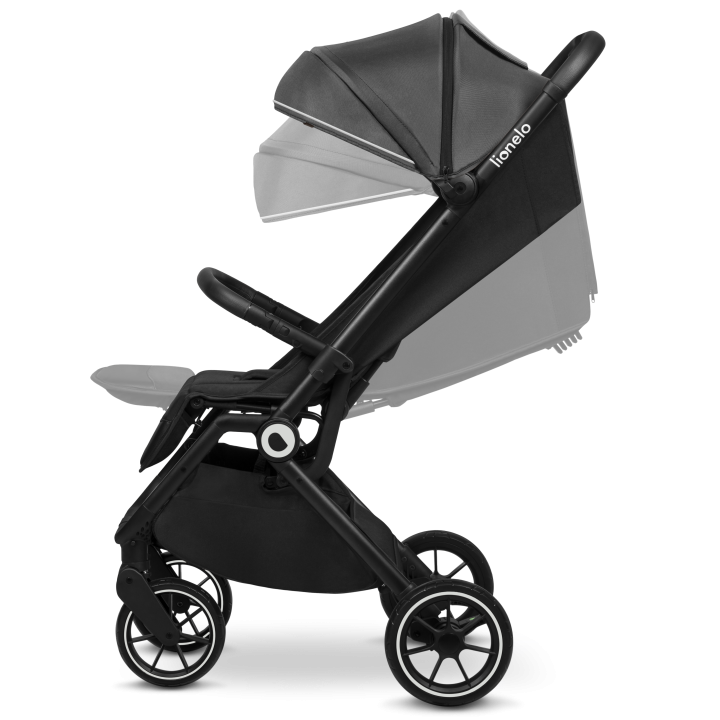 Lionelo Cloe Black Onyx stroller is equipped with a waterproof XXL canopy with UPF50+ filter, which will protect the child in changeable weather and provide pleasant shade on a sunny day. In the large, capacious basket under the seat you can fit shopping or all the accessories you need while walking. The practical cup holder will hold your favorite beverage. For your safety, we added reflective elements to the stroller. If dirt appears, you can wash the cover and basket, and you can wipe the frame with a damp cloth.