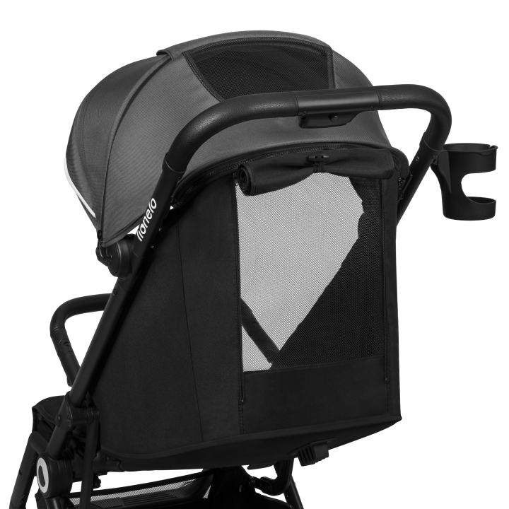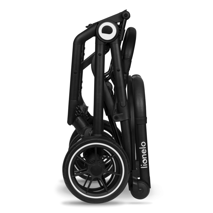 You can easily fold the Lionelo Cloe Black Onyx stroller with one hand. You can also use the auto-folding system – at the push of a button, the stroller will fold itself. You can easily fit it even in a small car trunk. The durable aluminum frame weighs only 8.2 kg. You can easily carry the stroller on your shoulder. With this in mind, we have included a special cover and belt.
