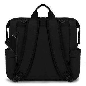 With a simple, minimalist design and functional pockets for versatile use, the Lionelo Cube backpack is perfect for a variety of circumstances. You can attach it to your child’s pram to relieve back strain and gain easy access to a bottle, nappy or dummy. It’s also perfect as a standalone accessory, and the changing pocket proves to be a safe place for a tablet or laptop for work. You can use the side buckles to reduce its size so that the backpack fits under your seat on the plane. It meets the hand luggage guidelines of most airlines.