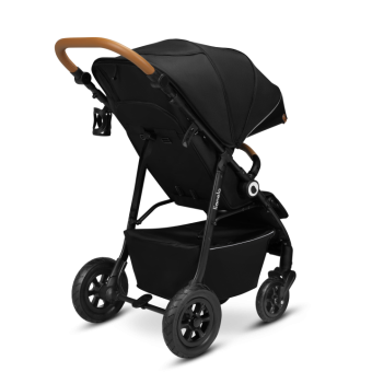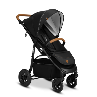 The Natt model is equipped with pumped, large off-road wheels with deep tread, which ensure comfort and good handling of the stroller in all conditions. The front ones are rotatable 360′ and have the ability to lock for straight forward movement. You can stop the stroller at any time with the central foot brake. The safety of the little traveller will be ensured by 5-point belts with covers and adjustment of their length and height in 2 positions. Its comfort will be taken care of by full cushioning, both at the front and rear. Reflective elements on the booth and basket, are responsible for visibility after dusk.