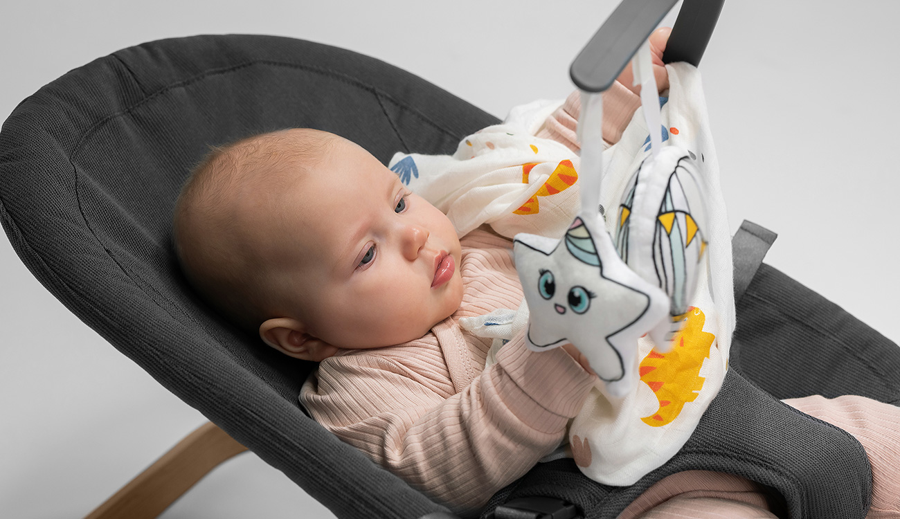With this in mind, we created the Lionelo June rocker. It can be used by children from the first day of life until they reach a weight of 9 kg or until they begin to sit up on their own. It imitates the natural balancing motion of rocking, so the toddler will feel almost like they are in a parent’s embrace. At the same time, you do not have to worry about their safety, because in the Lionelo June rocker they are taken care of by a stable structure and 3-point harness equipped with a soft protector.