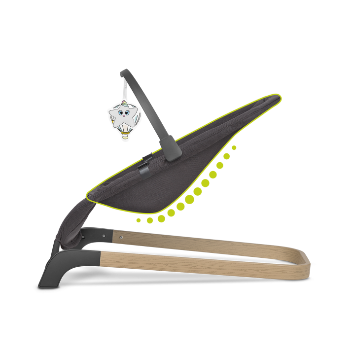 The Lionelo June rocker does not provide the toddler with unnecessary stimuli. It moves thanks to the child’s natural movements, so the baby develops motor skills and sense of balance. Rocking is actually also a necessary stimulation of the labyrinth for proper development. Younger babies can be gently and quietly rocked by hand, calming them and providing a sense of security that comes from the close presence of a parent.
