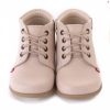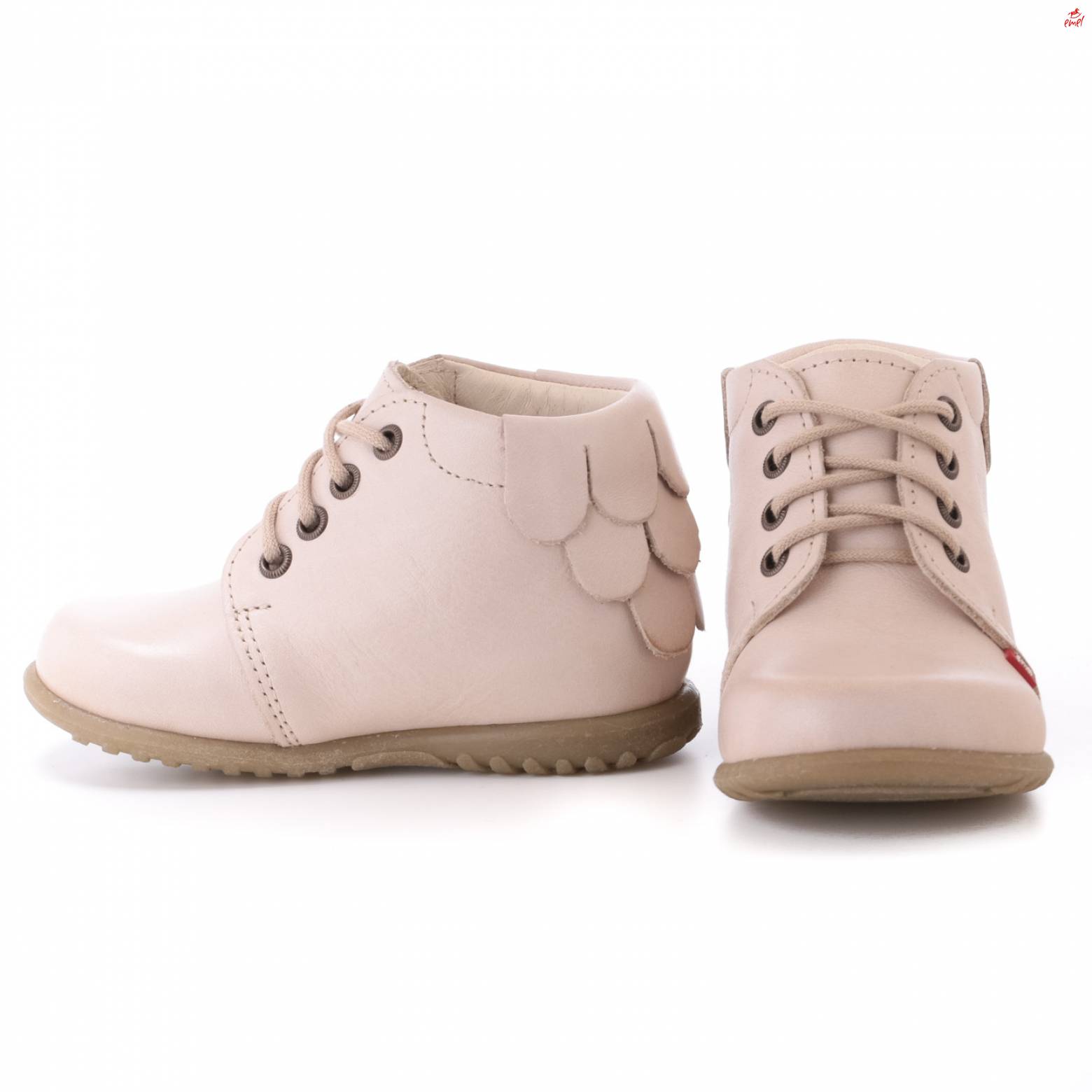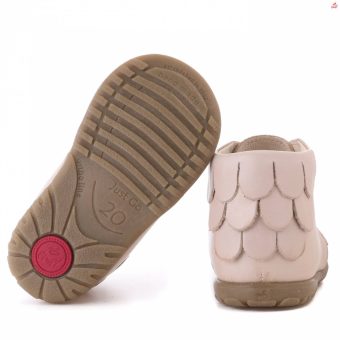 Sólarnir eru úr náttúrulegu leðri sem andar vel og er hæfilega mjúkt fyrir litlar fætur sem eru að vaxa og mótast. Góður stuðninguri frá sólanum og púðarnir í hliðunum styðja við eðlilega stöðu barnins.