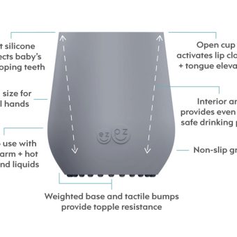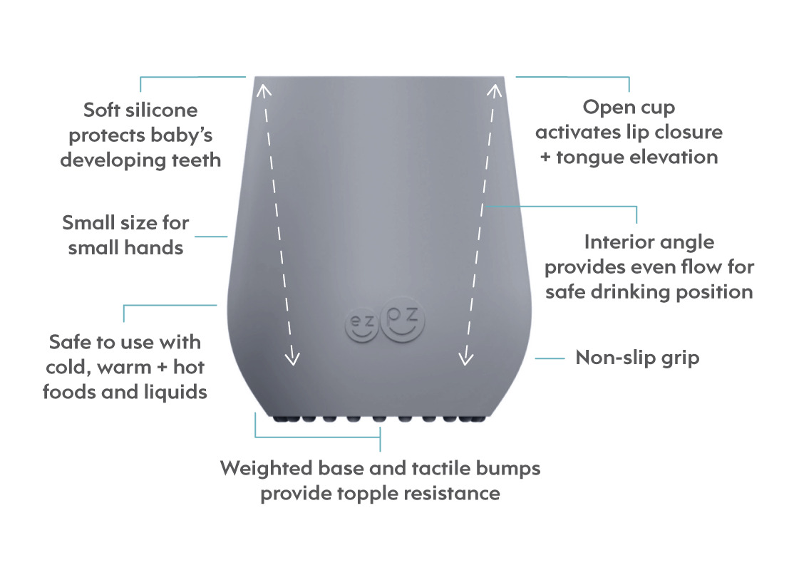 Mini Cup er silicon bolli hentar börnum frá 12 mánaða aldri, bæði þeim sem eru vön að nota Tiny Cup og eru tilbúin að fá meira magn í glasið jafnt og þeim sem eru æfa sig að drekka úr glasi í fyrsta skipti.