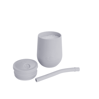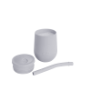 Mini Cup + Straw frá ezpz er frábær silicon bolli með loki og silicon röri fyrir börn frá 12 mánaða aldri til að læra að drekka með röri og úr bæði lokuðu eða opnu glasi.