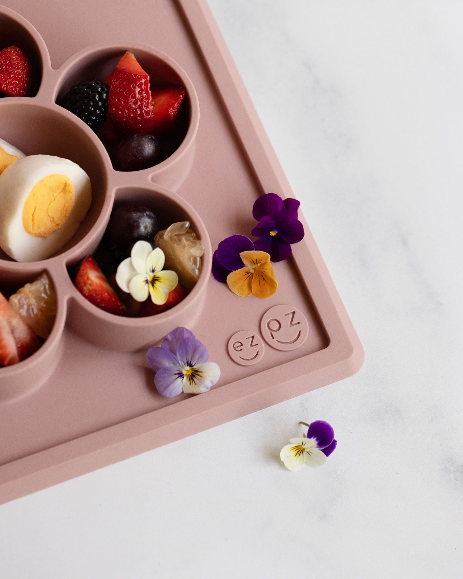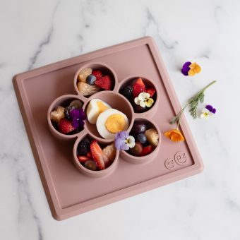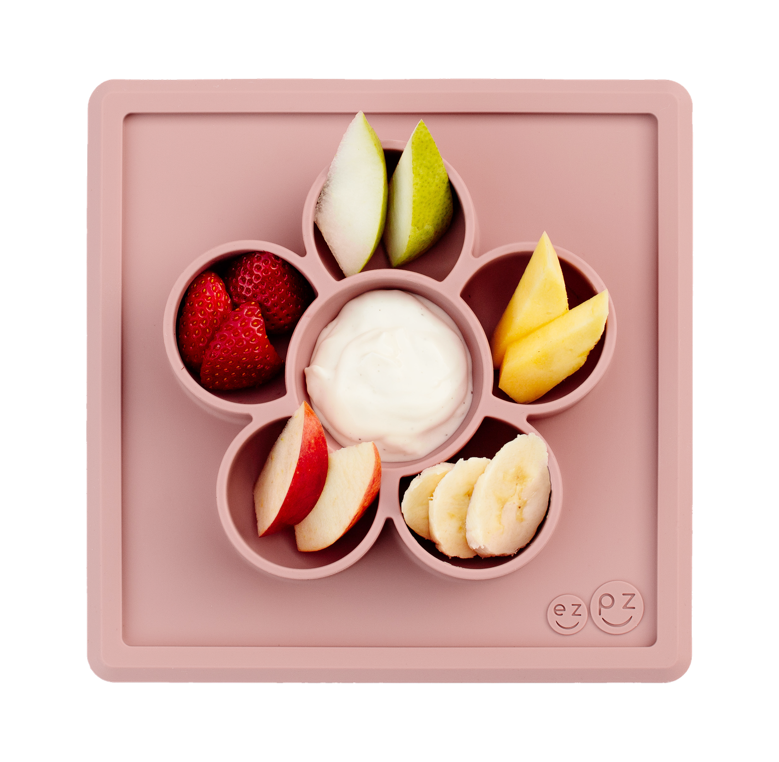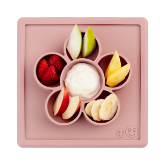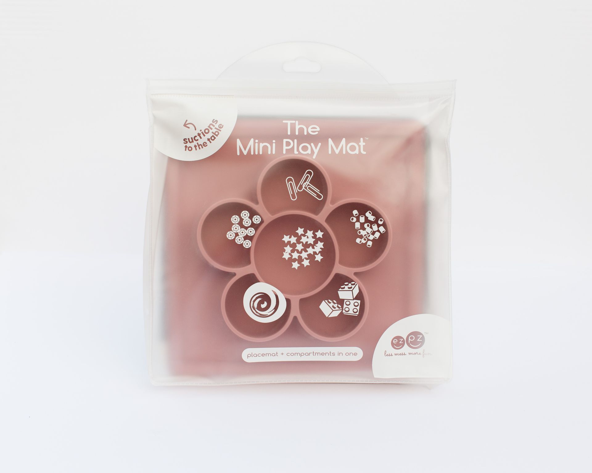 Mini Play Mat nýtist á marga vegu. Gerðu matartímann skemmtilegann með því að nota hólfin fyrir grænmeti, ávexti, ídýfu og þessháttar eða notaðu mottuna til að sortera t.d. perlur eða málningu. Mottan sogast við borðið sem gerir það erfiðara að henda henni í gólfið.