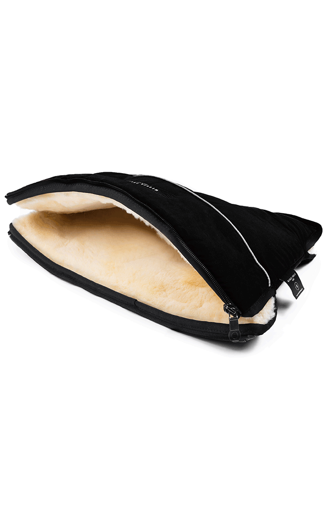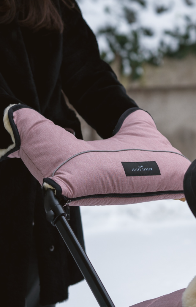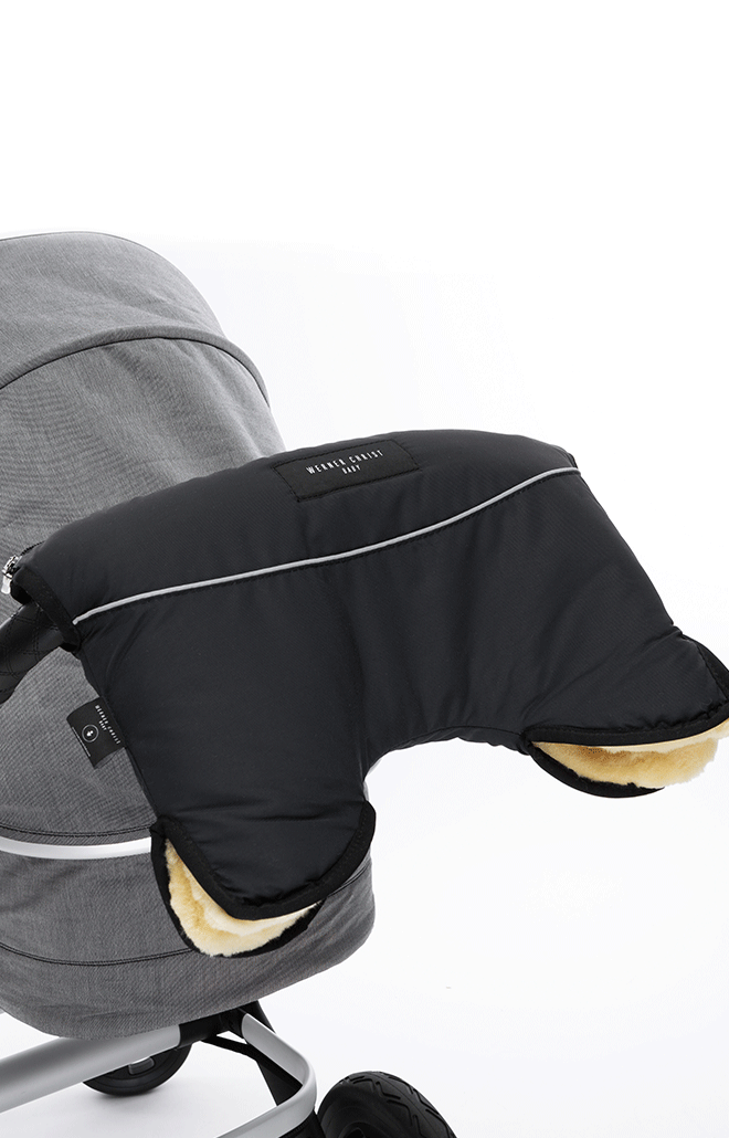 Our hand warmer MOFFY promises warm hands when walking with a stroller or buggy. Real lambskin on the inside and maximum space ensure a comfortably warm feeling. On the outside it is made with a high-quality, sporty fabric that is wind- and water-repellent. A reflector strip on the top also ensures safe use at dusk. Moffy is easily attached to any continuous push bar using a zipper.