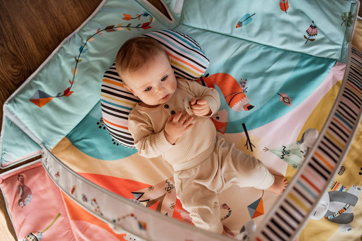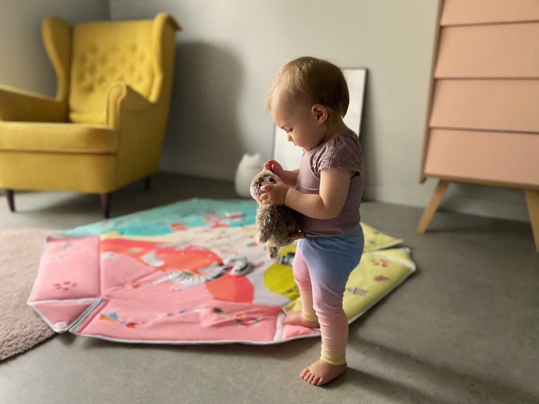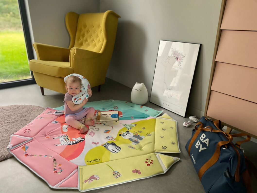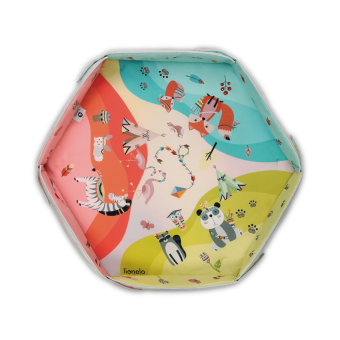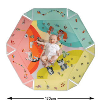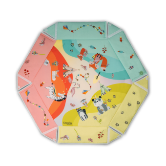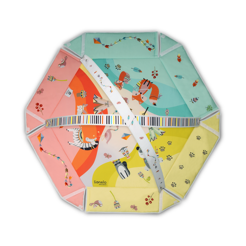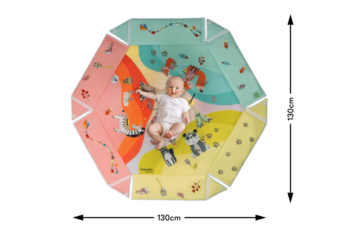 Lionelo Jenny combines a playmat and half-playpen functions. Hexagonal shape creates a large space for play for the child, while soft and thick filling ensures an efficient thermal insulation from the ground. The product is equipped with high foldable walls and toy bars with double-face overprints that are installed with the use of special clips. Jenny playmat has been subjected to a series of internal checks and has been tested in an independent certifying laboratory – Hamilton. The product meets standards indicated by the E 71 European Safety Standard.