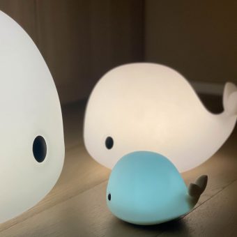 Our fine whale lamp is made of soft silicone and has rechargeable batteries, which are charged using a USB connector. After just two hours of charging, the wake lamp lights up for six to eight hours. Even if the lamp lights up for a long time, its LED light source does not get hot.