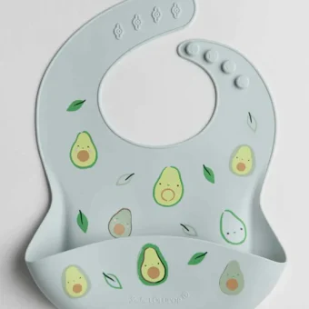 Our silicone bibs are buttery soft, waterproof, and stain-resistant. It is easy to clean; simply wipe down for a quick cleaning or put it in the top rack dishwasher for a deep clean. It features a wide catch-all pouch that sits below a high chair tray – perfect for collecting food, crumbs, and spills. Reinforced buttonholes for a durable and adjustable fit for long-lasting wear, suitable for ages 3 – 36 months. This handy bib is available in various modern colors and fresh designs to make mealtime fun and enjoyable.