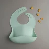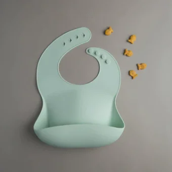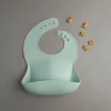 Our silicone bibs are buttery soft, waterproof, and stain-resistant. It is easy to clean; simply wipe down for a quick cleaning or put it in the top rack dishwasher for a deep clean. It features a wide catch-all pouch that sits below a high chair tray – perfect for collecting food, crumbs, and spills. Reinforced buttonholes for a durable and adjustable fit for long-lasting wear, suitable for ages 3 – 36 months. This handy bib is available in various modern colors and fresh designs to make mealtime fun and enjoyable.