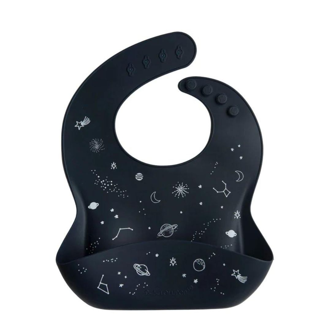 Our silicone bibs are buttery soft, waterproof, and stain-resistant. It is easy to clean; simply wipe down for a quick cleaning or put it in the top rack dishwasher for a deep clean. It features a wide catch-all pouch that sits below a high chair tray – perfect for collecting food, crumbs, and spills. Reinforced buttonholes for a durable and adjustable fit for long-lasting wear, suitable for ages 3 – 36 months. This handy bib is available in various modern colors and fresh designs to make mealtime fun and enjoyable.