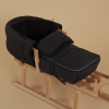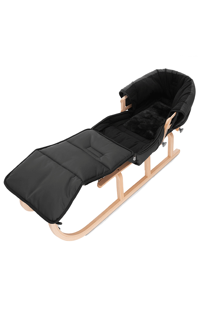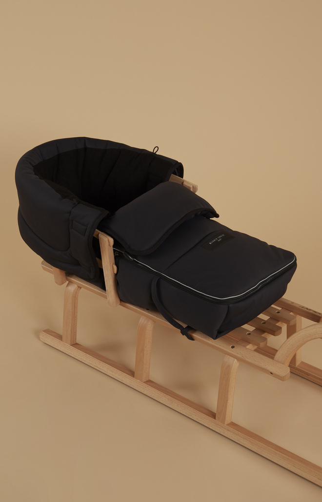 Thanks to the soft, brushed inner lining made of pure cotton and the seat cover made of lambskin patchwork, our ZERMATT thermal sled footmuff is the perfect companion for tobogganing fun in winter. This footmuff is equipped with a separable two-way zipper, which allows complete separation from the top and easy entry and exit. With four straps and a foldable back section with Velcro fastener, Zermatt can be easily and securely attached to all common sled models. The extra-high and padded back provides warmth and protection. The fabric cover is made of PolarSoft: a modern, functional fabric in which membrane layers are laminated together. The result is a warming, windproof, water-repellent but at the same time breathable fabric,