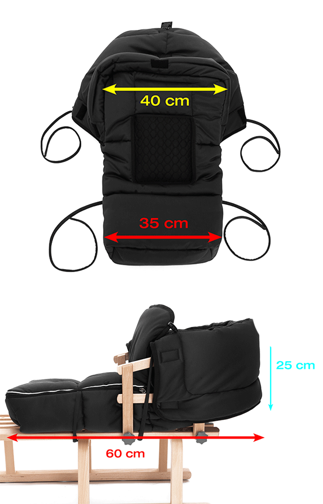 - Ties and Velcro fasteners for optimal attachment to the sled