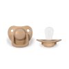 A 2-pack with fine pacifiers produced with symmetrical pacifier head of soft and durable clear silicone.