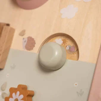 This wooden multi-activity walker offers many challenging activities to support the development of your child’s motor skills. There are multiple activities to explore and master. Thanks to the balanced design the baby walker is a great help for children of 12 months or older that are almost ready to take their first steps. Prepare yourself for some joyful cheers when your little one speeds through the house. The rubber wheels will not make any marks on your floor and are safe for use inside.