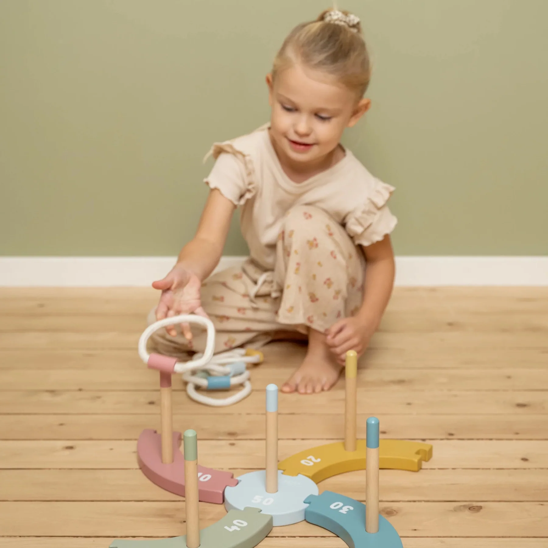 Focus, aim and throw! Try to get your rope ring around the wooden posts and score points. You can set up the playing field in different configurations so every game offers a new challenge. A fun activity for the entire family!