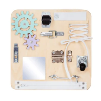 A handy and portable activity board. Its attractive and compact form is ideal for going out for a walk or a longer journey. During the trip, your child will spend time fruitfully, develop motor skills and hand coordination, and improve dexterity and concentration. Thanks to it, you will provide yourself and your child with a journey full of joy! The MINI handling board has a lot of interesting elements, so your child will spend many valuable hours exploring all these functions. The product is intended from 3 years of age, only under the supervision of an adult